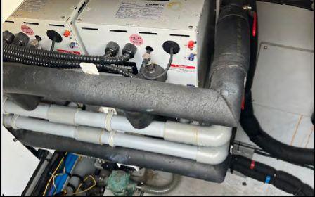 Full Raymarine electronics package including radar, autopilot, wind/speed/depth instruments and dual chartplotters (interior & flybridge – 2022). Aquamatic watermaker (628 hours), generator, shore power and 2000W/3000W inverters complete the onboard systems.